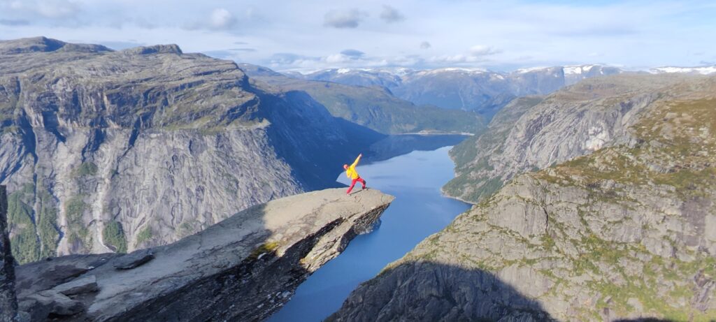 Tego dnia wyruszymy na całodniowy trekking do jednej z najbardziej ikonicznych atrakcji Norwegii – Trolltungi (Języka Trolla), spektakularnej formacji skalnej zawieszonej wysoko nad jeziorem Ringedalsvatnet. Trasa prowadzi przez surowe, górskie krajobrazy i wymaga bardzo dobrej kondycji fizycznej, szczególnie ze względu na znaczną długość szlaku oraz duże przewyższenia. Nagrodą za wysiłek będą niezapomniane widoki oraz możliwość stanąć na słynnym skalnym „języku”, który stał się symbolem norweskiej natury.