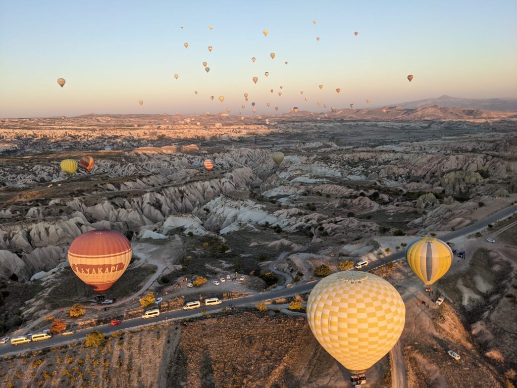 Dla chętnych, wczesnym rankiem możliwość udziału w locie balonem – jednym z najbardziej kultowych doświadczeń podróżniczych na świecie. Następnie zwiedzanie Muzeum na Wolnym Powietrzu w Göreme, wpisanego na listę UNESCO, gdzie w skalnych kościołach zachowały się unikatowe freski sprzed setek lat. Kolejne punkty to Dolina Devrent, znana z fantazyjnych kształtów skał przypominających zwierzęta, oraz Pasabag, gdzie znajdują się najbardziej charakterystyczne kominy wróżek. W miasteczku Avanos poznamy tradycję garncarstwa sięgającą czasów hetyckich. Na koniec wjazd na twierdzę Uçhisar, najwyższy punkt regionu, skąd rozciąga się panoramiczny widok na całą Kapadocję. Nocleg w Göreme lub Uçhisar.